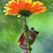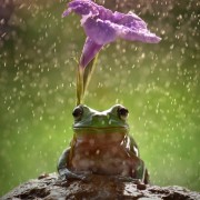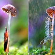Дивите животни имаат свој начин на справување со дождот, но понекогаш знаат да се најдат надвор на отворено кога истура, па токму затоа треба и да импровизираат. Во овие моменти тие изгледаат како мали човечиња кои држат чадор над својата глава.