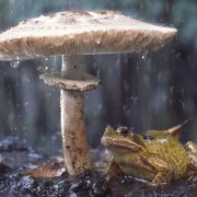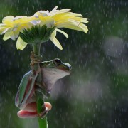 Поголемите животни се кријат под дрвја или карпи кога врне, но некои од нив, како мечките, едноставно ќе се истресат и тие се веќе суви. Орангутаните и другите видови мајмуни, многу често користат големи лисја од дрвјата во џунглата со цел да го спречат дождот да паѓа директно врз нив. Дури и на рибите и водоземците кои живеат во вода им пречи дождот, па токму затоа ќе нурнат подлабоко со цел да го избегнат. Во некои ретки случаи можете да забележите и верверичка со вистинско чадорче…
