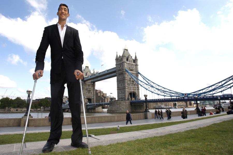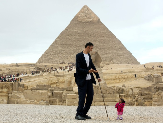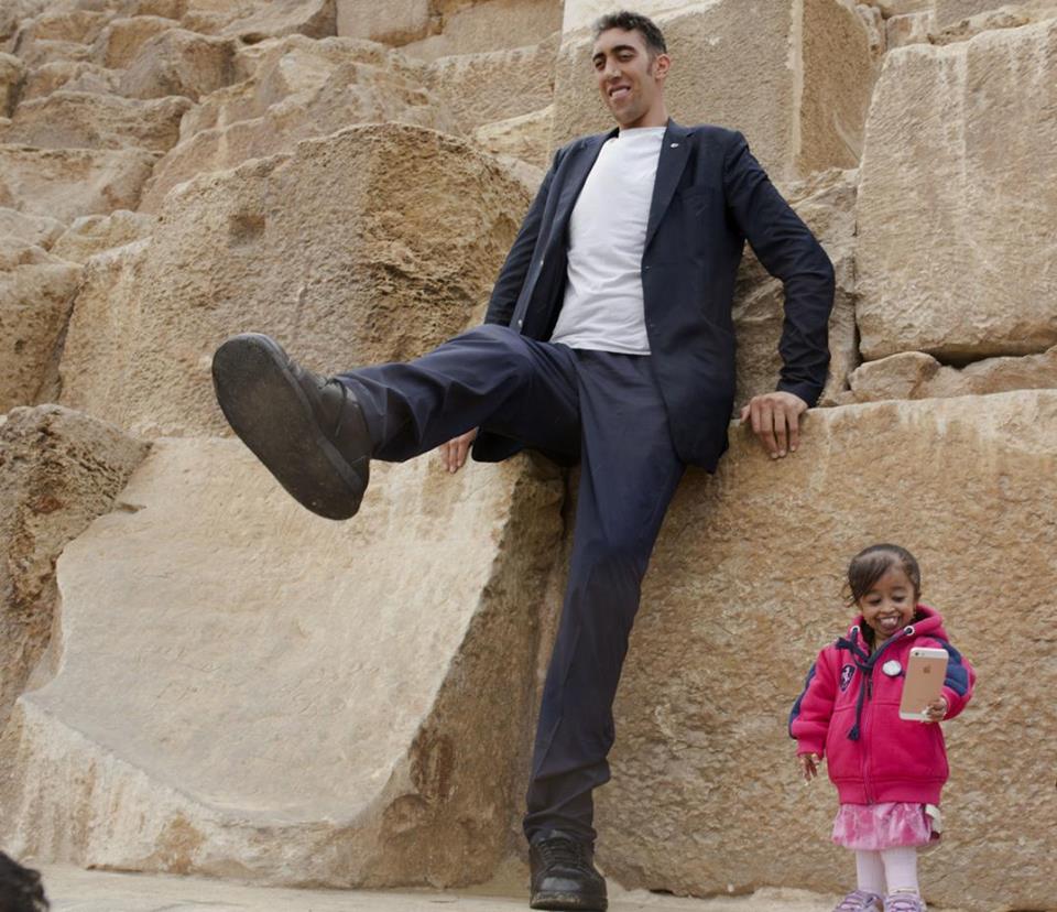 Највисокиот човек и најниската жена на светот се сретнале и се дружеле во Каиро, Египет за време на викендот. Султан Косен, 34, е висок неверојатни 2,51 метри, а Џијоти Амге, 24, е висока само 60 сантиметри.