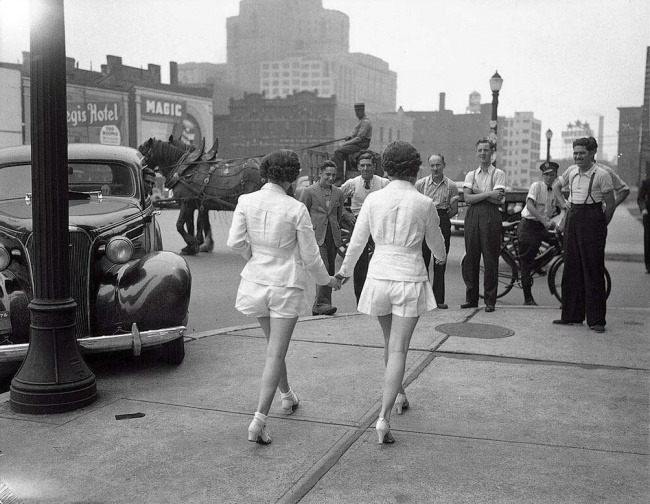 2 жени ги покажуваат нивните откриени нозе за прв пат во јавност (Торонто, 1937 година)
