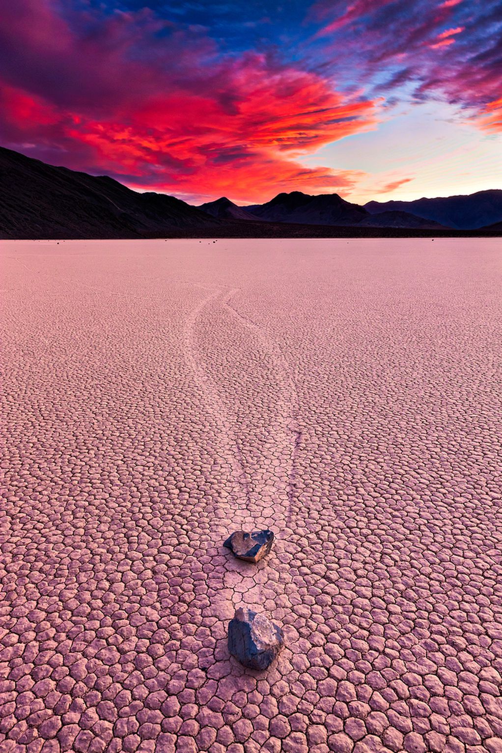 На некои места може да видите и паралелни патеки што се спојуваат и се одделуваат на некои места. Двата камења се наоѓаат на истата патека среде целото тоа пространство, како да учествуваат во трка. Мистеријата беше решена дури во 2013 година, кога истражувачите првпат фатија камења во движење користејќи GPS. Технологијата откри дека она што ги движи карпите во еден од најтоплите и најсушните делови на земјата е мразот!