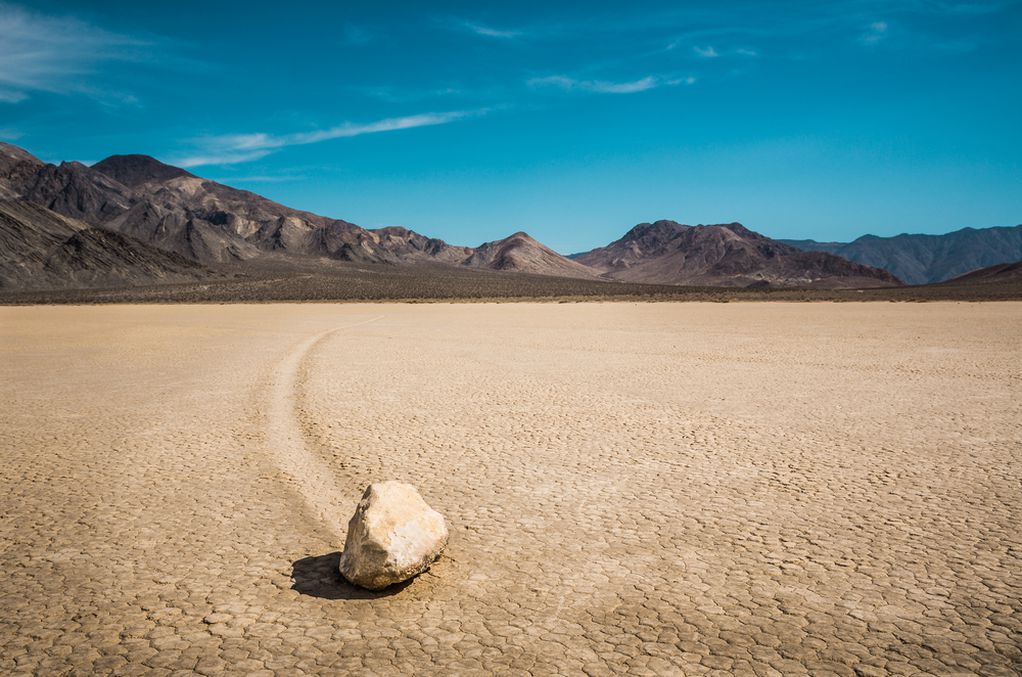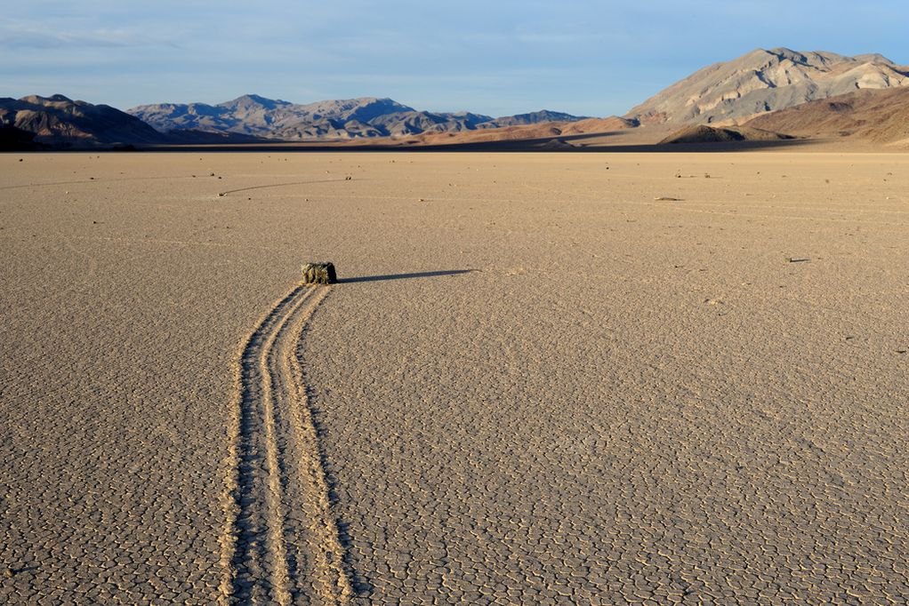 Сепак, нешто се движи. Додека шетате низ пустината, одеднаш можете да видите трага во земјата што покажува дека некој поминува таму. Патеката е невообичаено рамна и честопати го менува правецот под прав агол. Кое животно оди така? Никое. Ако тргнете да ја следите патеката, тоа ќе ве одведе до – каменот. Ги нарекуваат камења што пловат по пустината, а со децении причината не беше позната. Поточно, од почетокот на 20 век кога беше забележано. Камењата што пловат можат да тежат околу сто килограми, а патеката што ја минуваат може да биде подолга од 100 метри. Но, тешко дека ќе ги „фатите“ додека пловат. Тоа е многу редок феномен што се случува на неколку години. Долго време, луѓето мислеа дека камењата ги носат животни. Некои тврдат дека дува толку силен ветер што едноставно е во состојба да носи камења. Третото верување вклучува вонземјани во приказната.