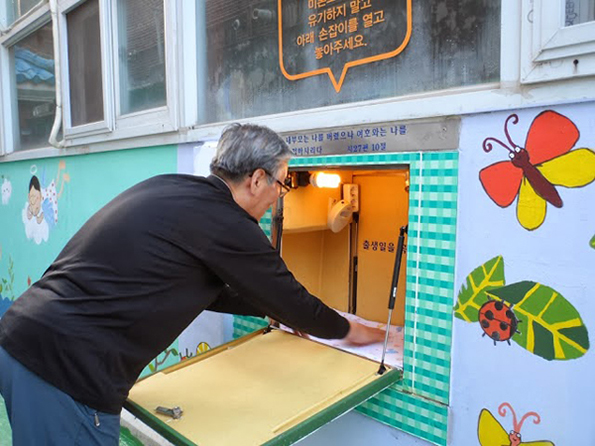 Пастирот Ли Џонг-рак од црквата Џусаранг во Сеул, Јужна Кореја ги замолува луѓето кои имаат деца што не ги сакаат, да ги остават во кутијата, наместо да ги фрлаат по улиците или во ѓубре. И тие го прават тоа. Наместо да ги остават да умрат, тие ги сместуваат во кутијата и потоа Ли се грижи за нив. Кутијата е загреана, со вградени сензори за чад и е залепена за самата црква.