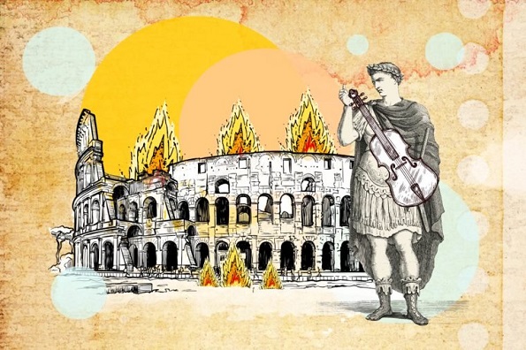 Овој римски император од првиот век сигурно не е невин за пожарот кој го зафатил Рим, но тој дефинитивно не музицирал додека градот горел. Историчарите тврдат дека тој дури и не бил во Рим кога започнал пожарот. Според историските податоци тој тогаш бил во Антиум, место кое било околу 50 км оддалечено од градот. Од друга страна, во антички Рим немало такво нешто како виолина. Нерон бил музичар (и наводно сакал да свири на инструмент сличен на харфа наречен китара), но сигурно не свирел инструмент што се појавил дури во 11 век. Еден римски историчар тврди дека, во тој момент, тој можеби го опевал легендарниот пад на Троја, но нема извештаи кои би го потврдиле овој факт.
