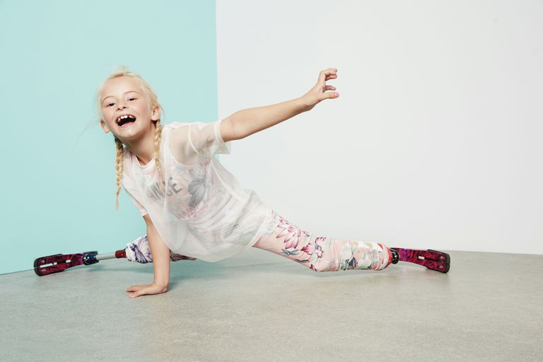 8-годишната Дејзи-Меј Димитри е ѕвездата на најновата кампања за облека за деца од Ривер Ајлнд, и фотографиите со неа се многу инспиративни. Таа носи слатка облека што ѝ одговара со простетските нозе и изгледа навистина одлично!