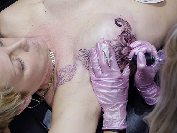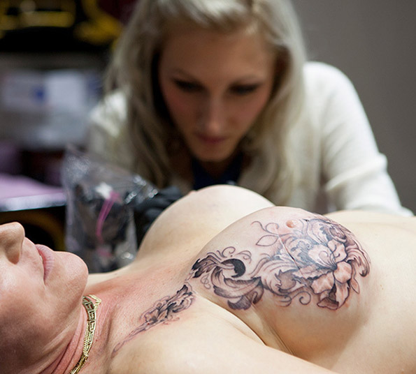 Моли Ортвајн е 47-годишна жена која го победила ракот на дојките. Како и кај многу други пациенти, операцијата ѝ оставила лузни кои секојдневно ја потсетувале на болното искуство. Но, таа не сакала да се помири, сакала повторно да си го засака телото, па пронашла добар начин да ги разубави своите гради – со тетоважи. Моли решила дека наместо лузните кои секојдневно сведочеле за нејзината битка со болеста сака да направи нешто радикално и исцелувачко. Моли имала двојна мастектомија, што значи дека двете дојки ѝ биле отстранети. Затоа ги прекрила со прекрасни цветни орнаменти. Целата процедура траела неверојатни 7 часа, и како што таа вели, едвај чека да излезе на плажа топлес.