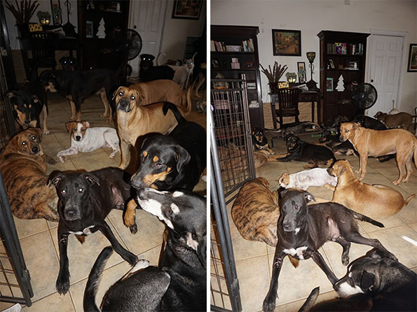 Па, наместо да ги остави на улица, да се соочат со ураганот сами, таа земала колку што е можно повеќе и ги внела во својата куќа. Досега таа има 97 крзнени пријателчиња од сите големини и форми. Погледнете!