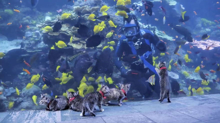 Овие мачиња и кученца истражуваат огромен аквариум и веројатно овие фотографии се она што ни треба во ова тешко време