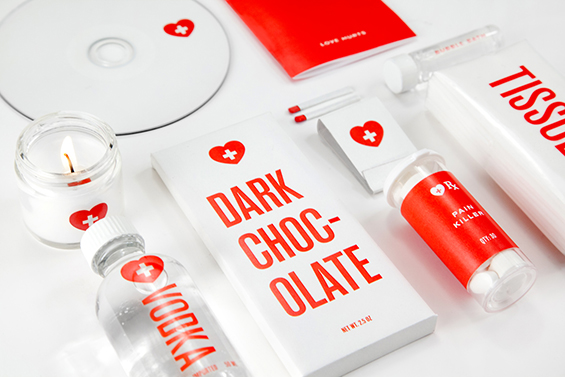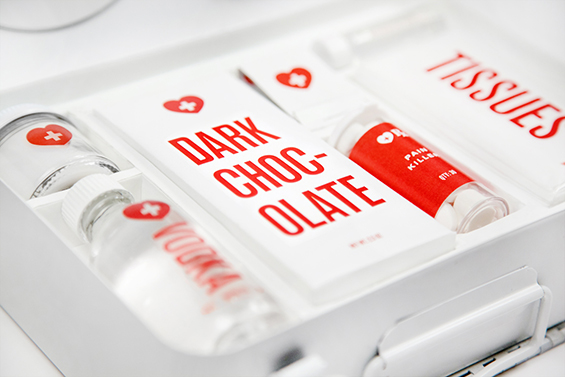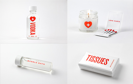 Креатор на ова интересно пакетче е Мелани Чернок, која живее и работи во Њујорк. Оригинално, комплетот се вика „Love Hurts Packaging“ и ги содржи сите неопходни работи за преболување на раскинувањето на љубовната врска. Комплетот е визуелно многу интересно направен, а се состои од марамчиња, чоколадо, мало шишенце вотка, апчиња за болка, свеќа, кибрит и други интересни работи.
