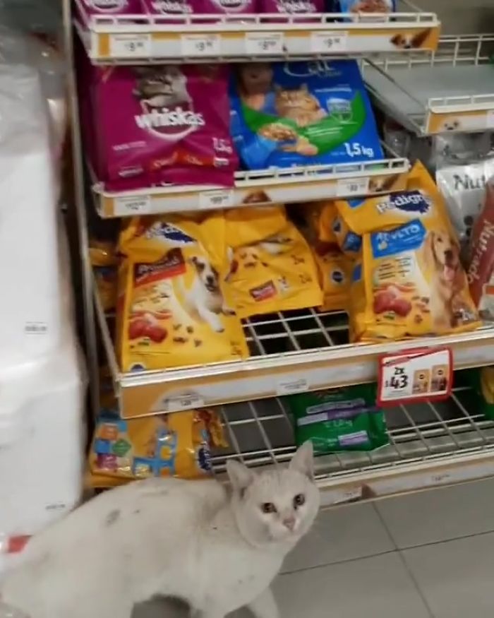Мачорот дирекно се упатил кон делот каде стои храната за животни