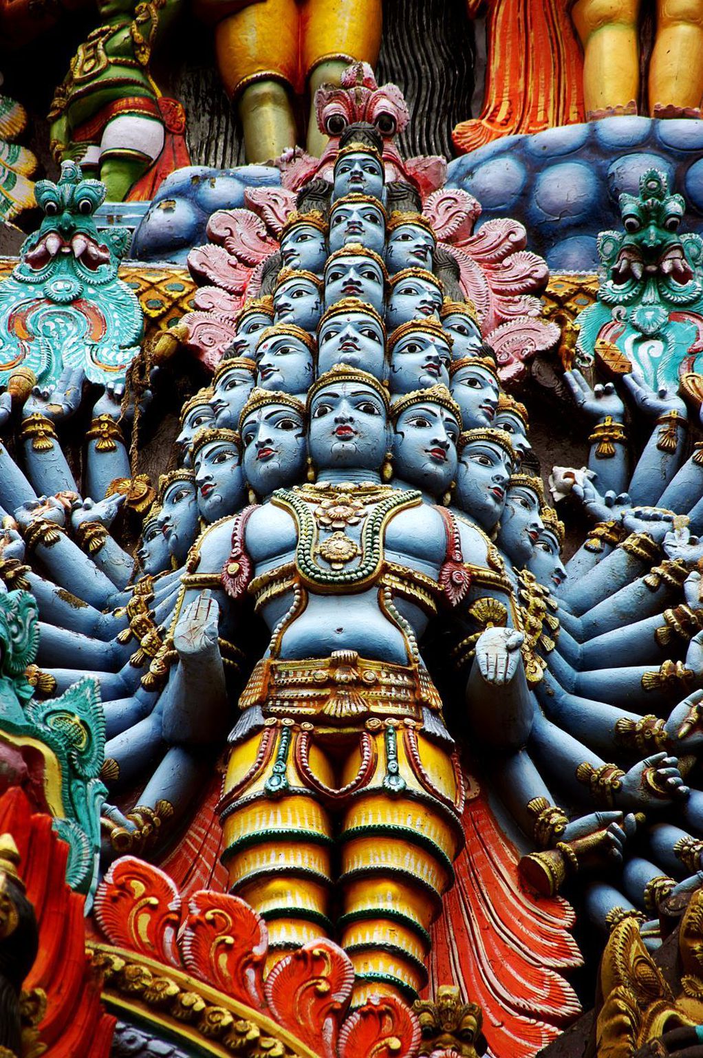 Најголемите храмови имаат над 15 ката, а надворешноста е целосно покриена со скулптури во разни бои, од кои некои изгледаат весело, а некои малку демонски. Ги има над 1500 од нив во еден храм, а вкупно дури 30 000 во целиот комплекс. Затоа, ако сакате да ги разгледате подетално сите, можеби е подобро да земете сместување во близина.
