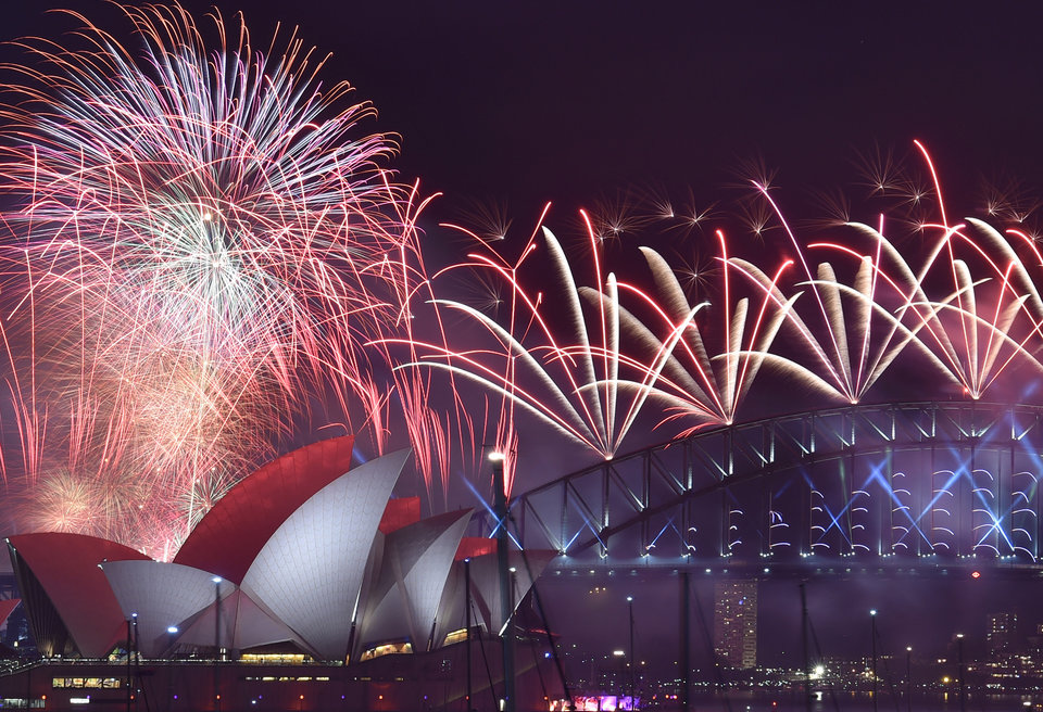Сиднеј, Австралија – Огномет го осветли небото над Сиднејската Опера и Мостот Харбор
