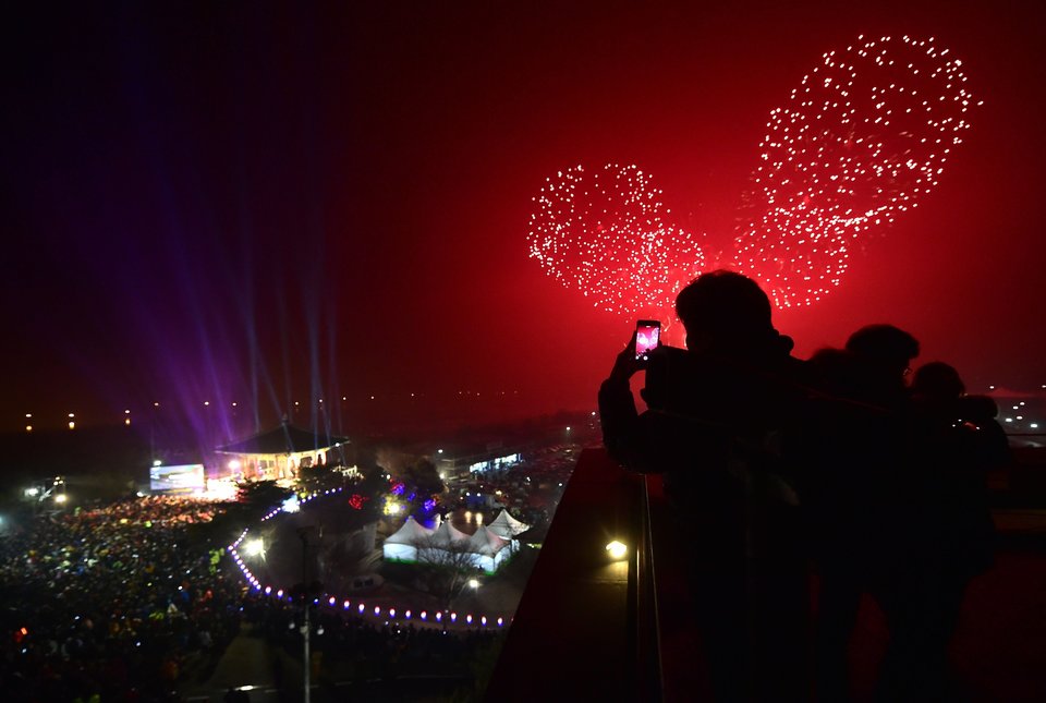 Паџу, Јужна Кореја – Овие луѓе ја слават новата година во мировниот парк во Имџинак, во пограничниот град Паџу во близина на демилитаризираната зона која ги дели Јужна и Северна Кореја