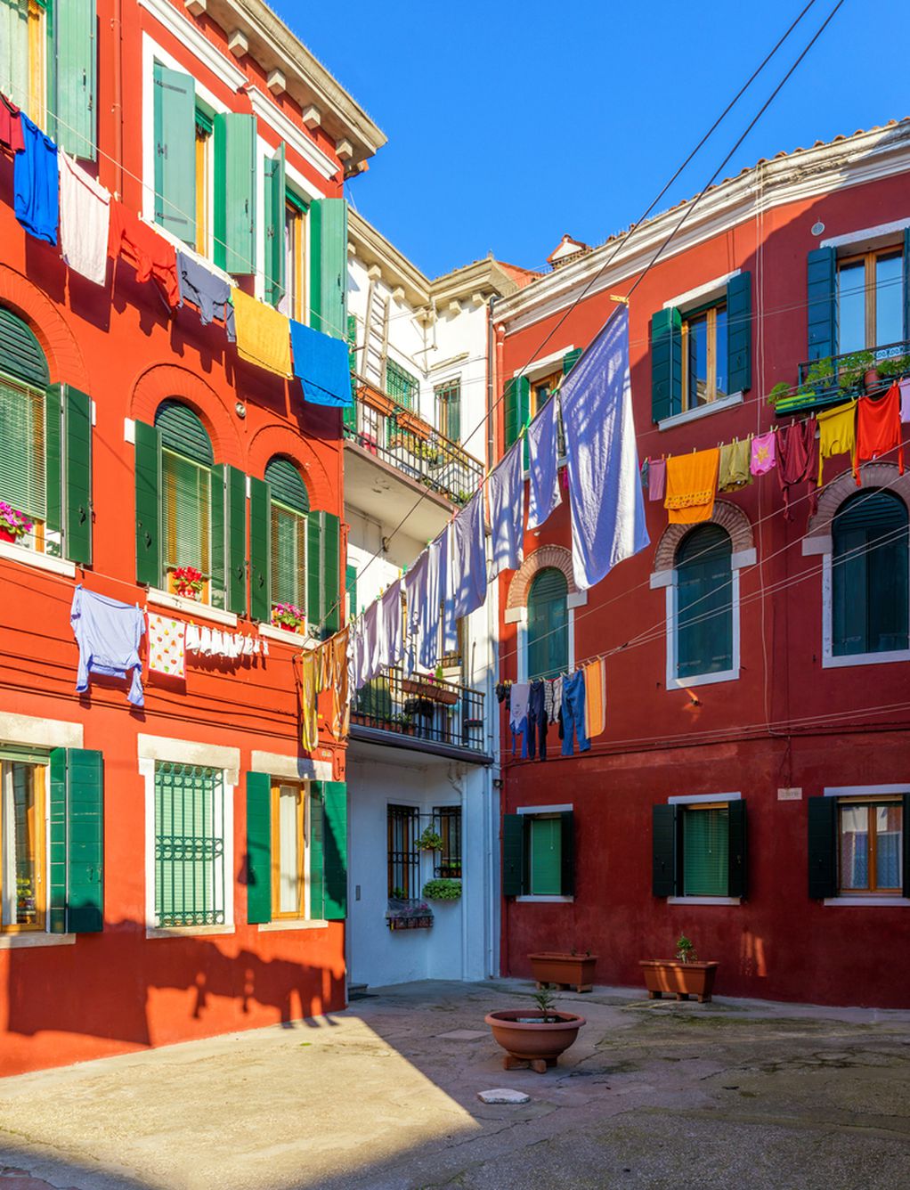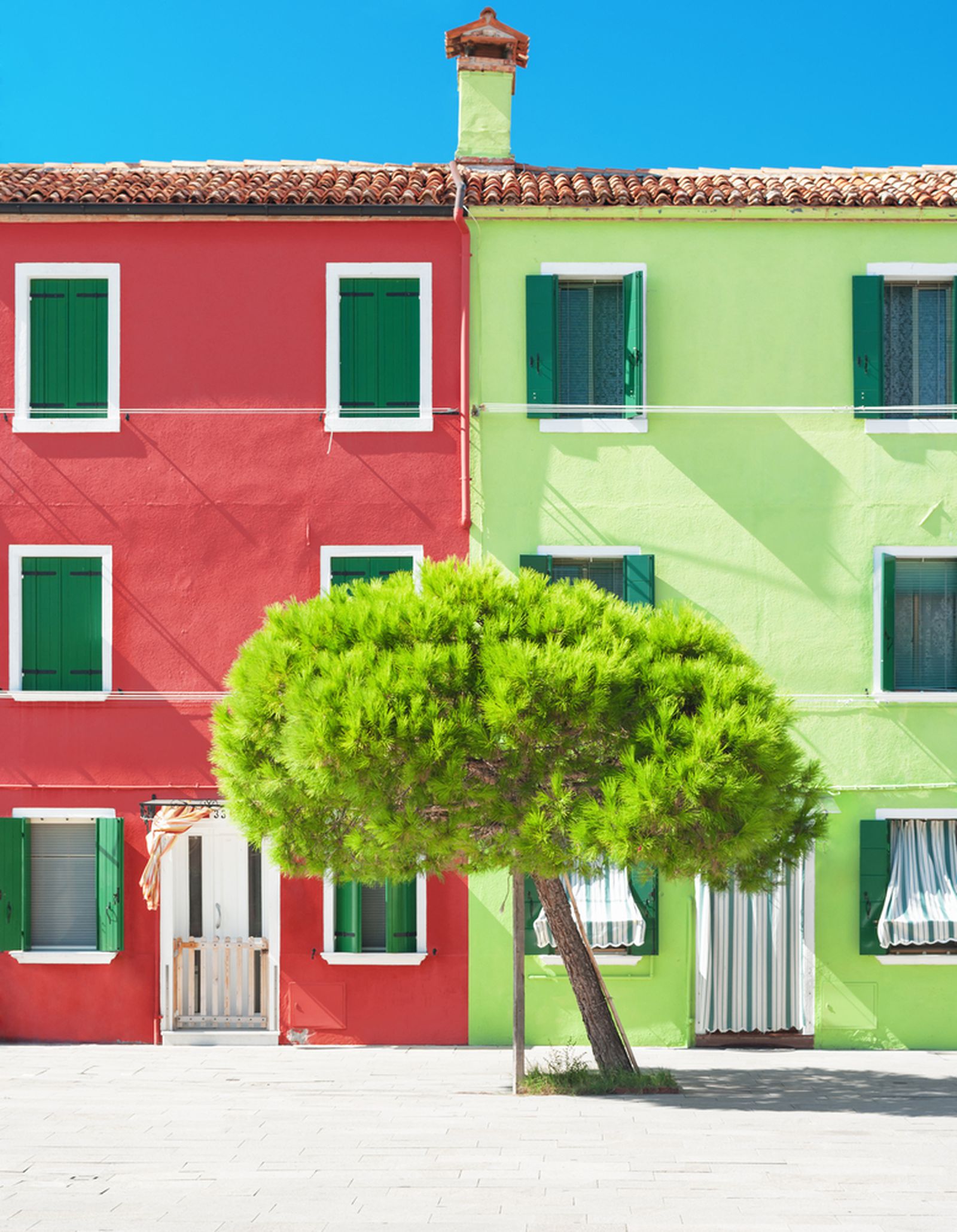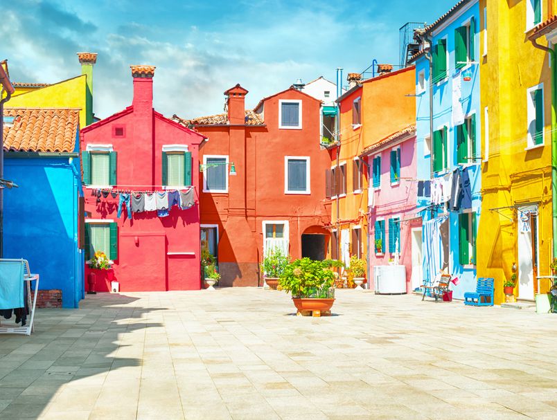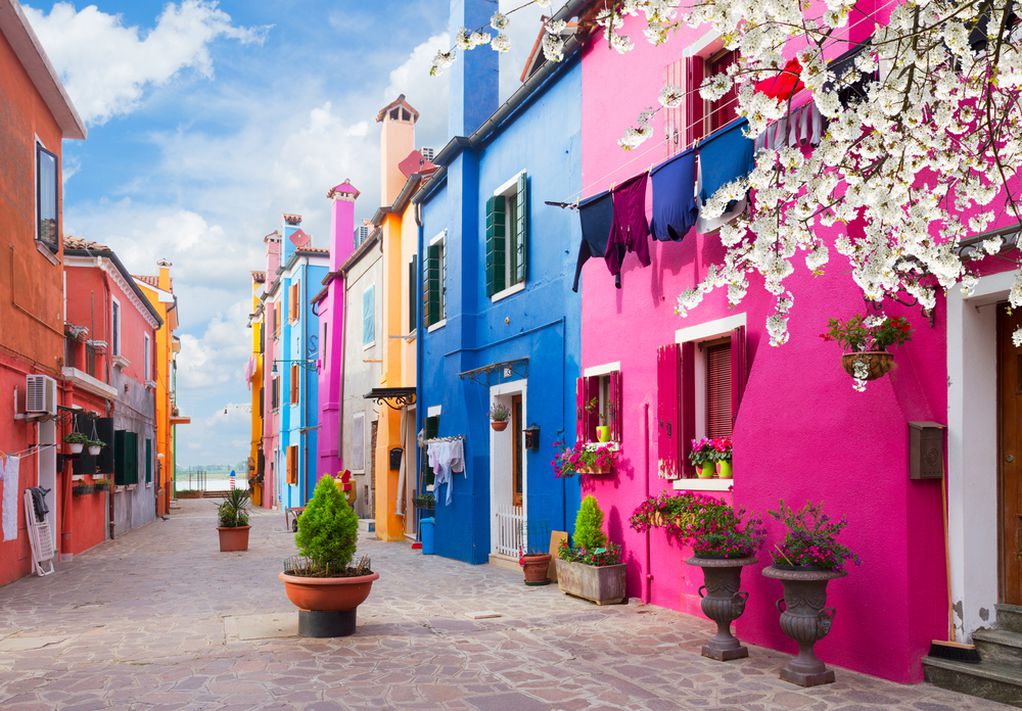 Од далеку веќе е јасно што го прави ова место толку посебно. Постојат шарени градови, и тука е Бурано. Живописни и контрастни бои се наоѓаат на крајбрежјето: виолетова, црвена, розова, жолта, портокалова, сина, зелена… Венеција е позната по својот карневал, но еве еден карневал секој ден.