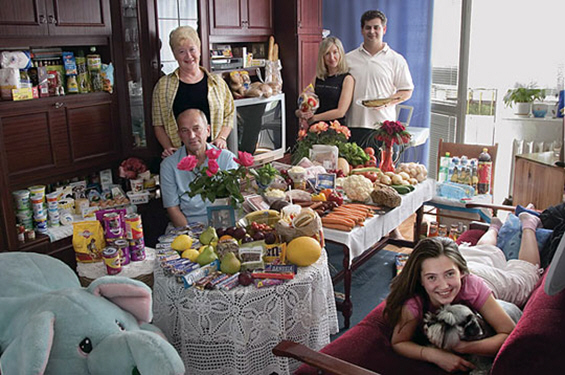 Во книгата „Hungry Planet“, Питер Мензел и Феит Далуисио презентираат една интересна студија направена низ фотографии, во која фамилии од различни држави прикажуваат што имаат на својата трпеза во текот на една седмица. За овој потфат тие посетиле 30 семејства во 24 држави, од Бутан и Босна до Мексико и Монголија и направиле една статистика околу неделните трошоци. Бидејќи пред краток период потрошувачката кошничка беше актуелна тема и кај нас, ова е одлична можност да се направи споредба. Ова се само еден дел од семејствата кои тие ги посетиле.