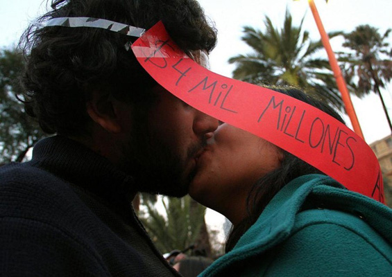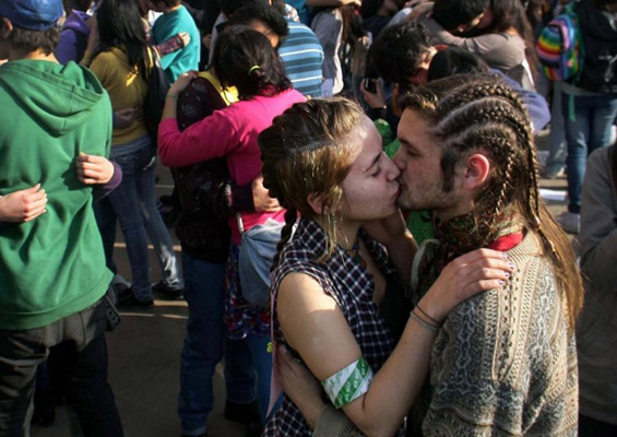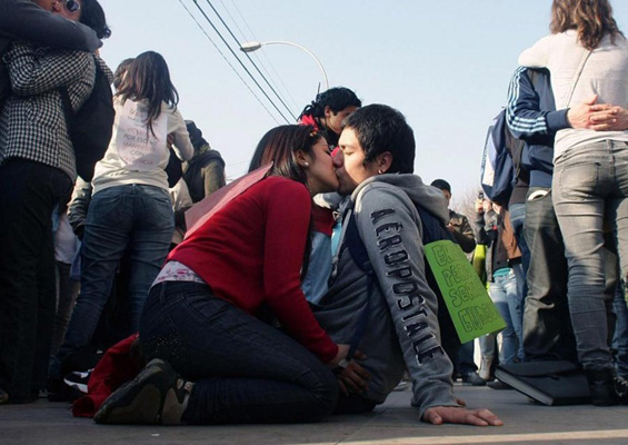 Чилеанските студенти пронашле нов и оригинален начин за протестирање против скапиот и неправеден образовен систем. Наместо да скандираат, да ги маваат факултетите со патлиџани или да прават бељи, тие решиле да спроведат мирни протести со бакнување, кои започнаа на 6 јули и сè уште траат. Со демонстрирање љубов, студентите сметаат дека ќе успеат да го разнежат срцето на чилеанскиот претседател Себастијан Пинера.