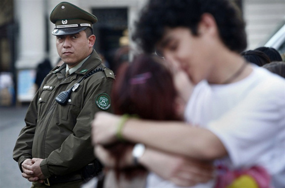 Невиниот, мирен „љубовен“ протест на чилеански студенти, на моменти бил насилен и морал да биде регулиран од страна на полицијата.