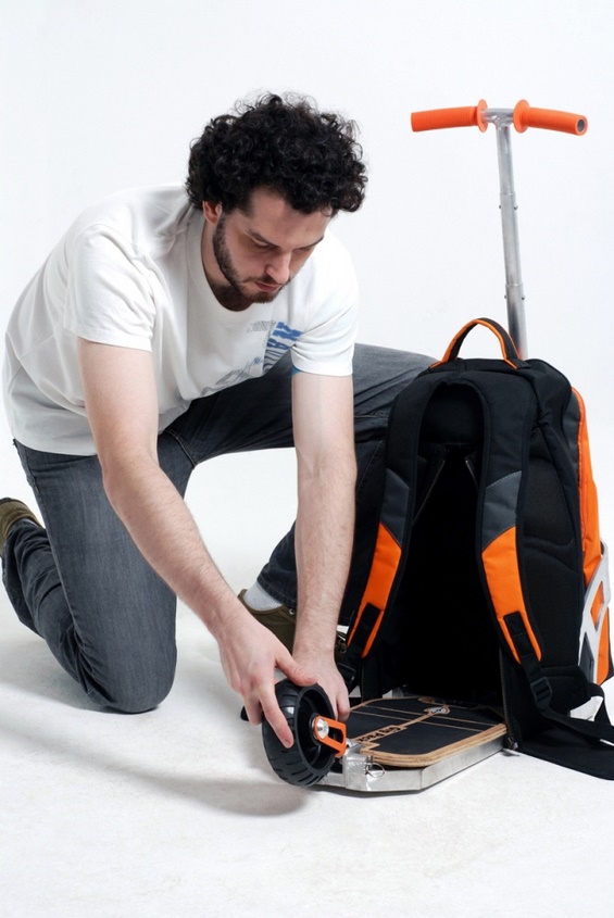 Овој одличен концепт е дело на Густаво Бренк и е наречен „Gig pack“. Ранецот кој е доста простран и во кој може да се сместат многу работи, во неколку потези може да се трансформира во превозно средство со кое лесно ќе можете да ги одбегнете градските гужви и притоа да не ја загадите околината.