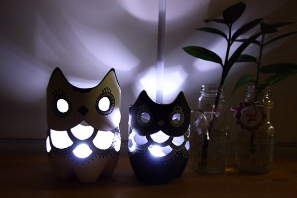 Рециклирајте ги старите шишиња и направете светилки во форма на бувови