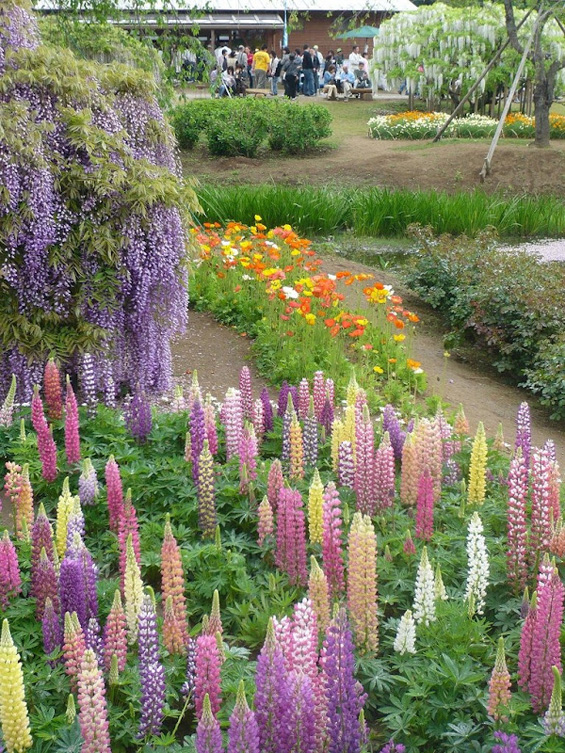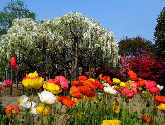 Масивните цветни крошни се протегаат на површина од 1000 метри квадратни. Едно вакво големо дрво во паркот, е старо 100 години и неговите гранки се потпрени на начин, кој формира фантастичен огромен син чадор од фуџи цветови. Воедно, има и цветен тунел од бели фуџи цвеќиња, долг 80 метри, а на тунелот од жолтите кингусари пак, му треба уште неколку години за да прерасне во фактички цветен тунел.