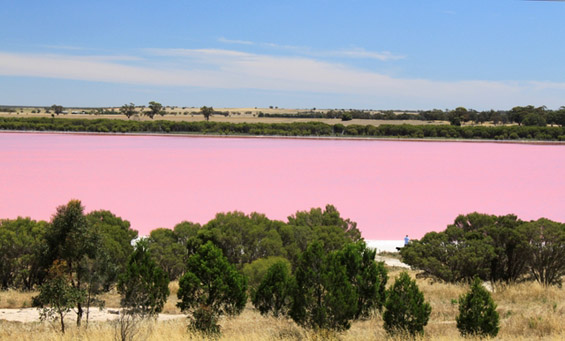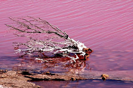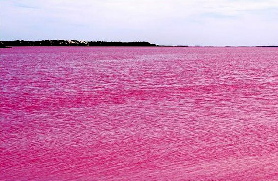 Необичната боја на водата се должи на цијанобактеријата „Dunaliella salina“, која вирее во средини со висока соленост. Таа ја апсорбира сончевата светлина, по што ги продуцира розовите нијанси. За време на сувата сезона бојата е поизразена.