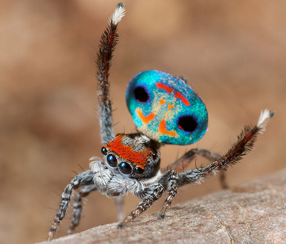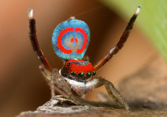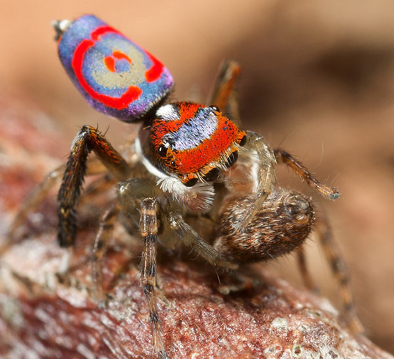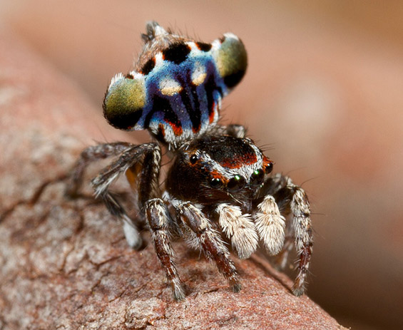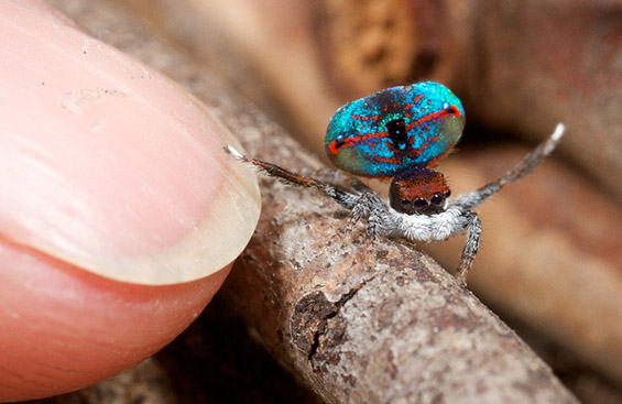 Пајакот-паун (Maratus volans) е еден од најколоритните скокачки пајаци на светот. Долг е од 4 до 5 милиметри. Мажјакот има продолжен стомак, на кој обично преовладуваат сината, црвената и црната боја, односно тој е неговиот главен адут за освојување на женките.