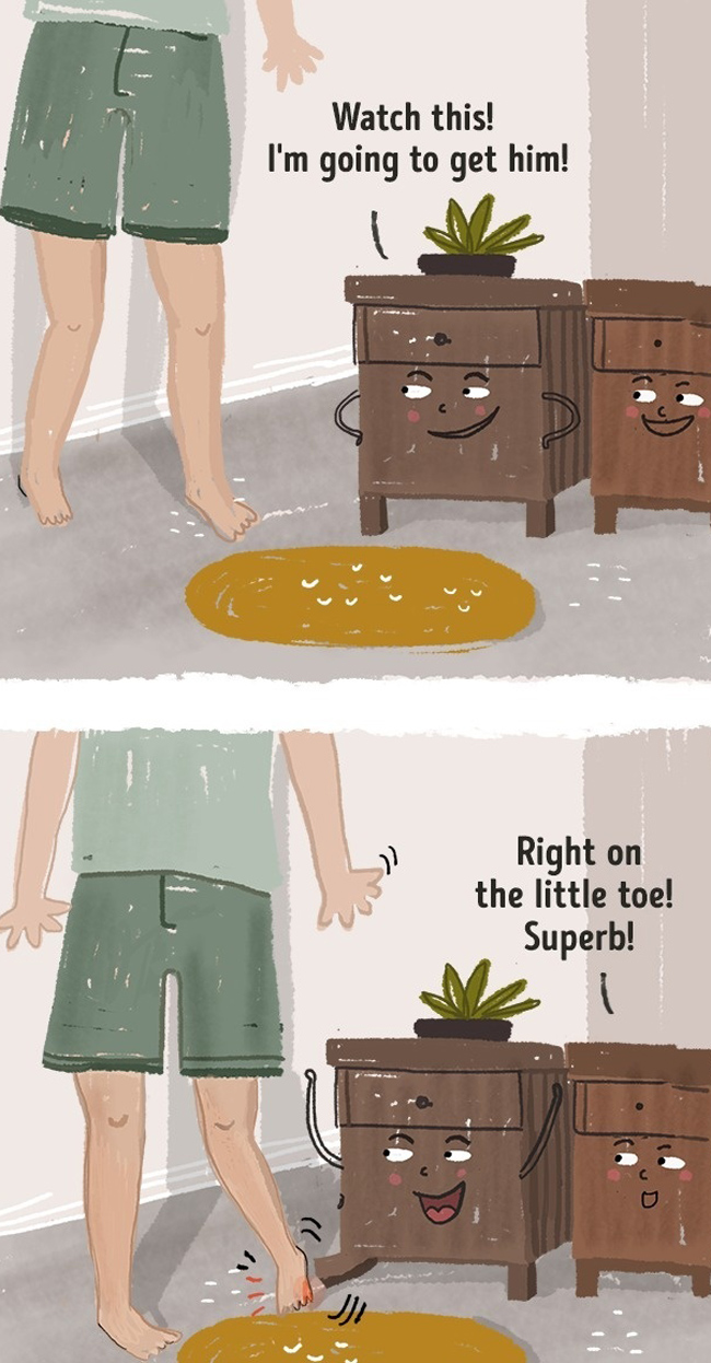 Разговор помеѓу две шкафчиња: „Гледај сега како ќе го средам!“; „Право во малото прсте! Браво!“
