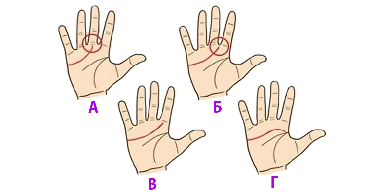 Г: Ако започнува помеѓу делот под показалецот и палецот, вие сте внимателни, грижливи, имате добри намери и меко срце.