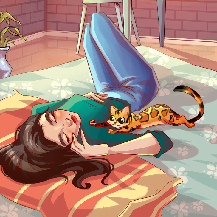 Утрото откривате дека вашето домашно милениче спие на средината на креветот, а вие ќе паднете на подот. Пред да заспиете, животното веројатно лежело во положба што била удобна за двајцата, но откако сте заспале, миленичето заземало сè повеќе простор за да се чувствува поудобно. Оваа положба е карактеристична за разгалените животни што се сигурни дека нивниот сопственик ќе им го исполни секој каприц.