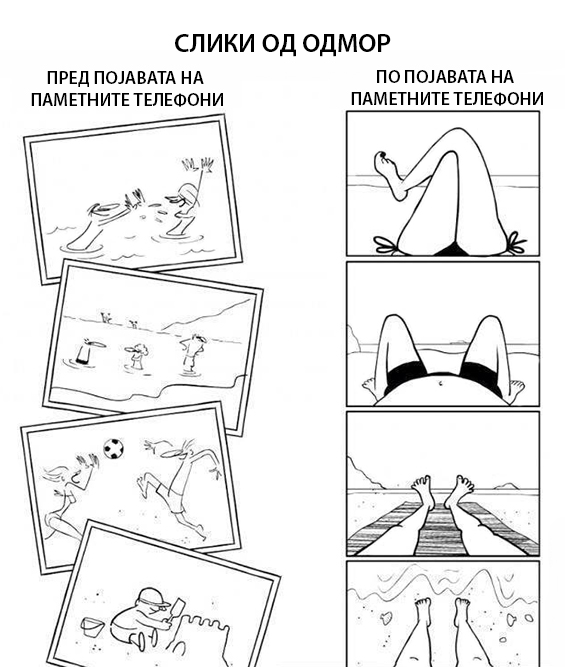 Паметните телефони во голема мера го променија начинот на живеење и функционирање. Со помош на вашиот џебен пријател сега можете да правите што сакате. Оваа смешна илустрација прави споредба од која се гледа што сменија паметните телефони кога станува збор за фотографиите од одмор.