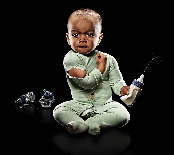 Тој ги прикажал снажните бебиња на комичен начин. Но, неговата задача не била лесна. Прво биле направени скиците за она што треба да се добие како краен производ, а потоа бил организиран кастинг на кој учествувале 30 бебиња на возраст од 3 до 18 месеци. Од сите нив, тој избрал 5 кој ги фотографирал.