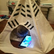 Мачката сама си направила простор во кутијата за да ја потпре шепата