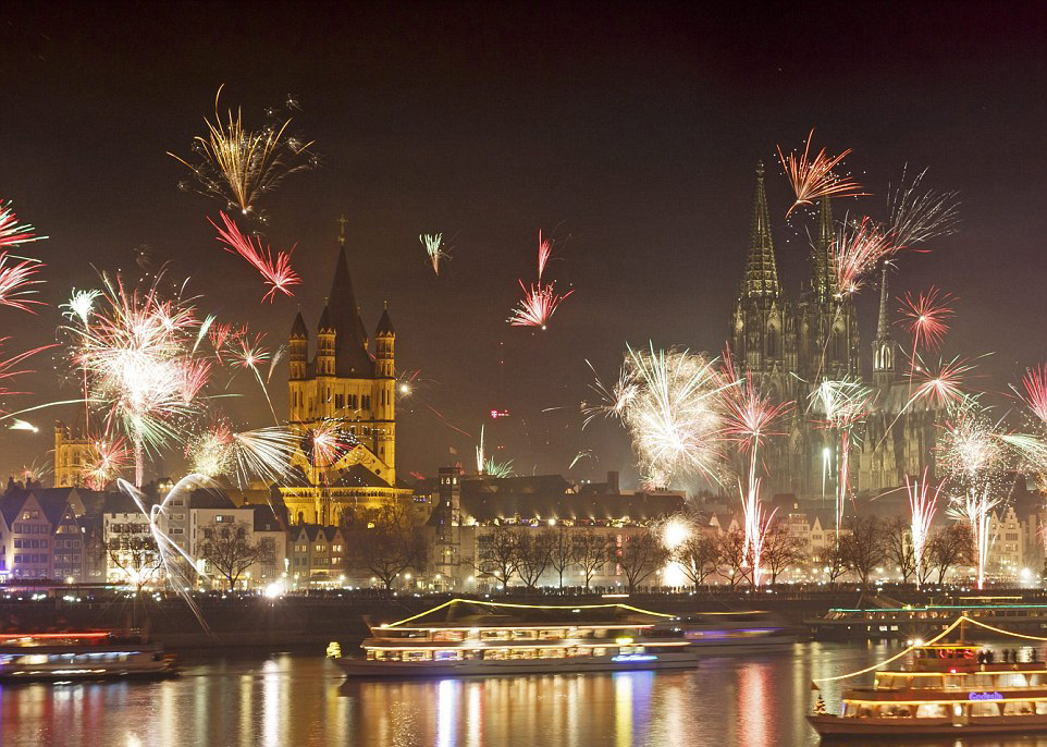 Реката Рајна во Келн, Германија беше осветлена со волшебен огномет