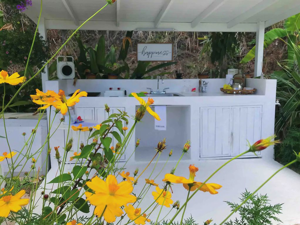 Има и кујна на отворено со сите потребни уреди за подготовка на вкусна храна. Исто така има и надворешна бања, базен, но и модерно џакузи за опуштање. На терасата има лежалки за апсорбирање на сончевите зраци.
