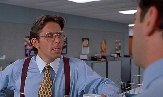Ламберг е шеф кој сака бескрајно долги белешки, документи и виси над вас, барајќи да дојдете на работа за време на викендите за да надокнадите. Гери Кол го доловува карактерот на шефот со фрази како: „Што се случува?“ и „Ааа“?