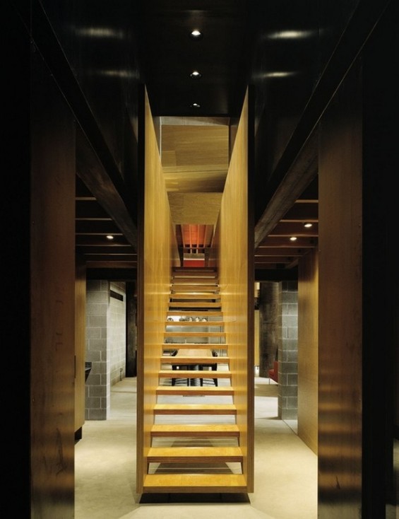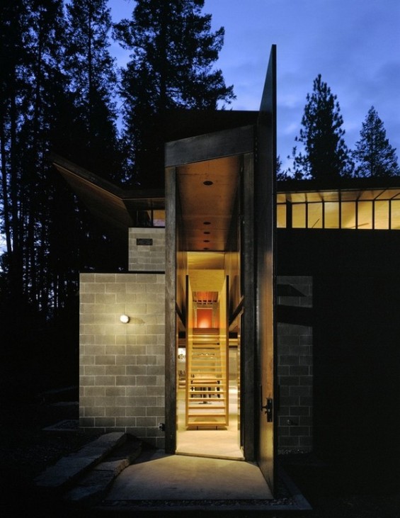 Архитектите успеале да создадат ентериер, кој и покрај комфорот ќе потсетува на шумска колиба, со тоа што дел од деталите ги оставиле да изгледаат како недовршени.