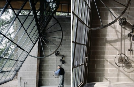 Оваа вила е дело на тимот архитекти на американската компанија Olson Kundig Architects, чија идеја била да изградат крајбрежна куќичка со огромен прозорец, со чие отворање овој објект целосно ќе го впие природниот амбиент и ќе се претвори во незабележлив дел од околината. Овој прозорец всушност е ѕидот кој гледа кон езерото, има димензии 9х6 метри, а се отвора со посебен механизам вграден на соседниот бетонски ѕид.