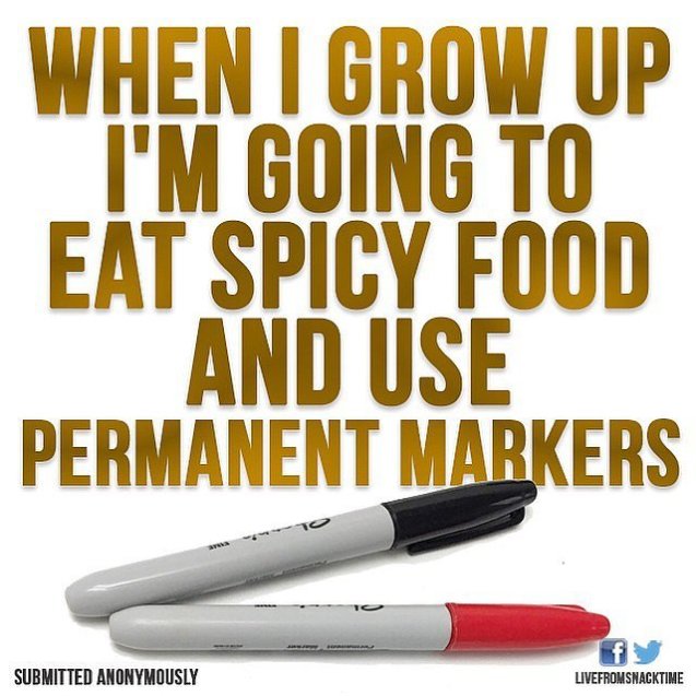 Кога ќе пораснам ќе јадам зачинета храна и ќе користам трајни маркери