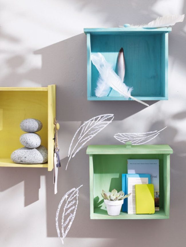 За оваа полица можете да искористите некоја стара фиока, кутија, гајба од вински шишиња, мало буре и слично. Бојадисајте ја фиоката во омилената боја, прицврстете ја на ѕидот и тоа е тоа.