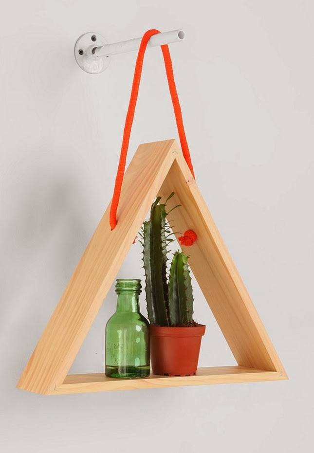 Едноставно, спојте три летви во форма на триаголник и прицврстете ги со шајки. Доколку сакате, можете да заковате уште една летва на средина, но не е задолжително. Уште подобро ќе изгледа ако на ѕидот закачите уште еден триаголник, веднаш под првиот, исто како на фотографијата.