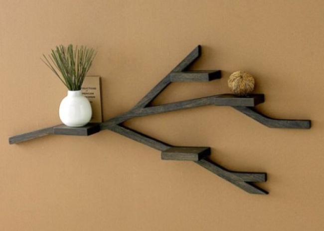 Првата полица можете да ја направите од најобични, необработени дрвени летви со различна должина, кои ќе ги наредите во кој било облик.