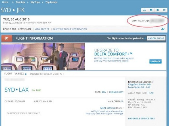 Фотографијата била објавена од патник кој летал со Делта Ерлајнс. Делта објавува неверојатен износ на информации, вклучувајќи го и бројот на електронскиот билет, резервацијата, бројот на лет, па дури и колку багаж имате пријавено. Во категоријата „Управување со моите резервации“ сѐ што треба е да се впише името на патникот и бројот на е-билетот или резервацијата.