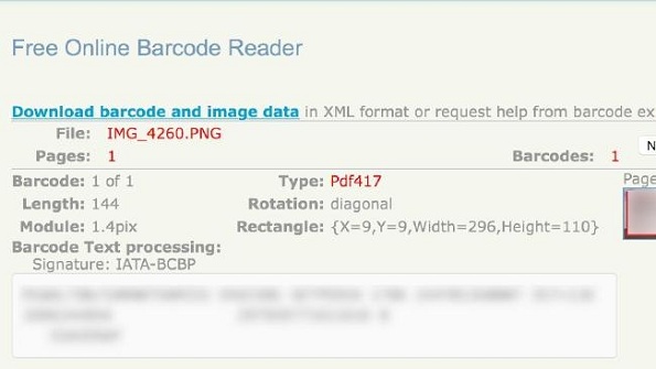Дури пострашно е тоа што може да се открие од баркодот. Во овој пример, можеме да видиме дека патникот објавува слика на социјалните мрежи каде што се обидува да ги сокрие важните информации, но не и баркодот. Имено, тој во основа ги содржи сите информации за картата за патувањето, сочувани во посебно читлив формат. Иако можеби мислите дека компјутерите на аеродромите се единствените уреди кои можат да го прочитаат ова, вистината е дека секој може да го чита баркодот. Постојат многу програми на Интернет што обезбедуваат информации врз основа на фотографијата која ќе ја поставите.