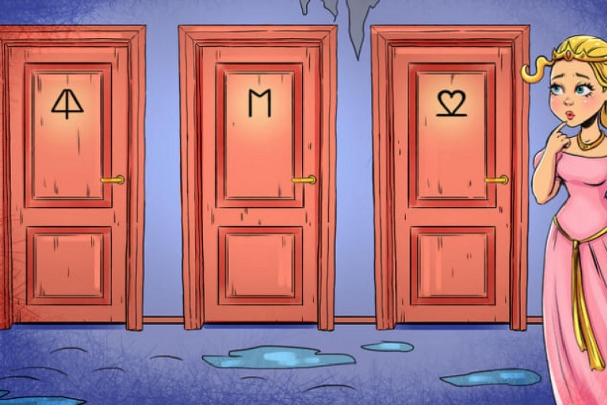 Таа гласи: Принцезата останала заклучена во кулата. За да побегне од лошата вештерка мора да помине низ четвртата врата, но постојат само три излеза. Каде е вистинскиот?