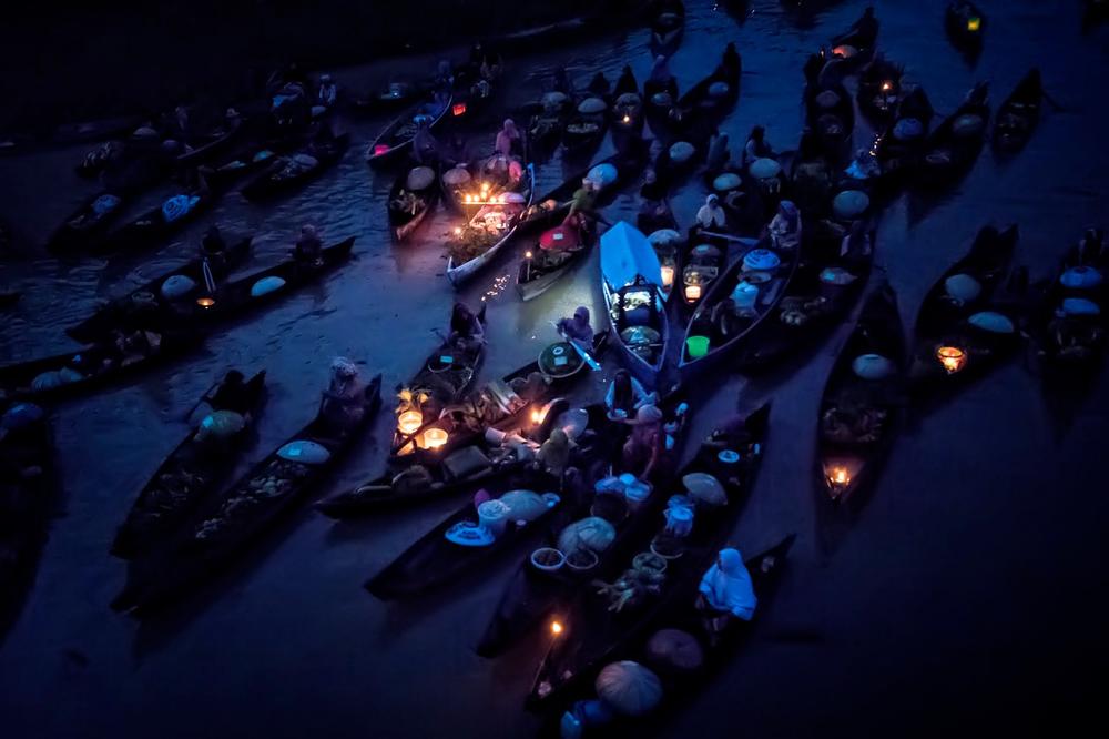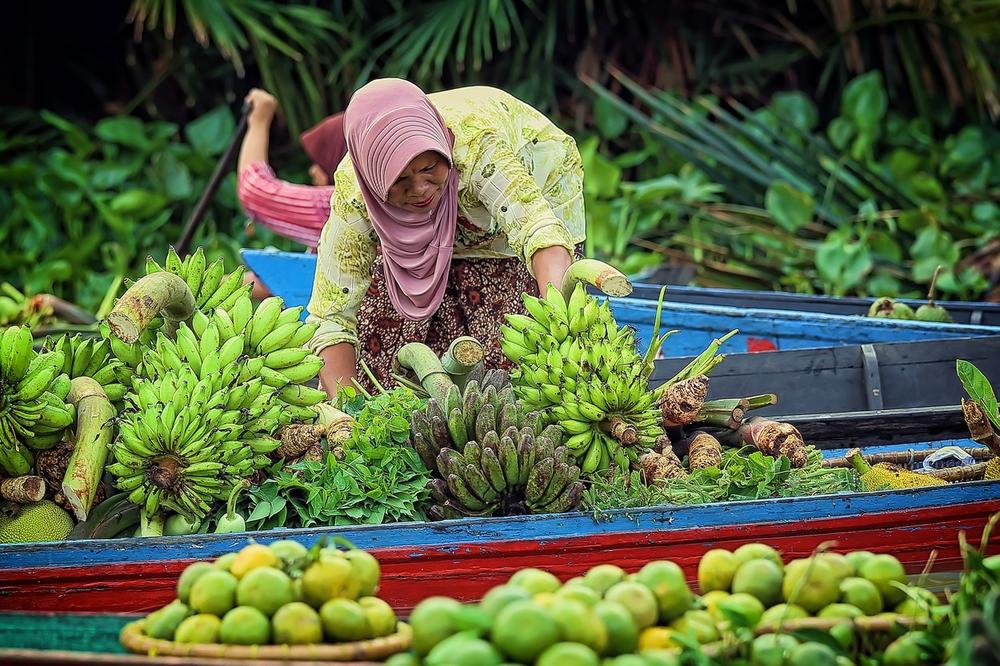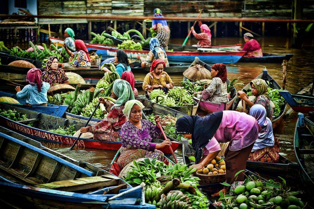 Она што го прави овој пазар еден од поголемите на светот и сигурно еден од највпечатливите е големиот број на чамци набиени едни до други, преполни со овошја и зеленчуци. Таму жените од индонезиското село Лок Баитан ги продаваат своите производи.