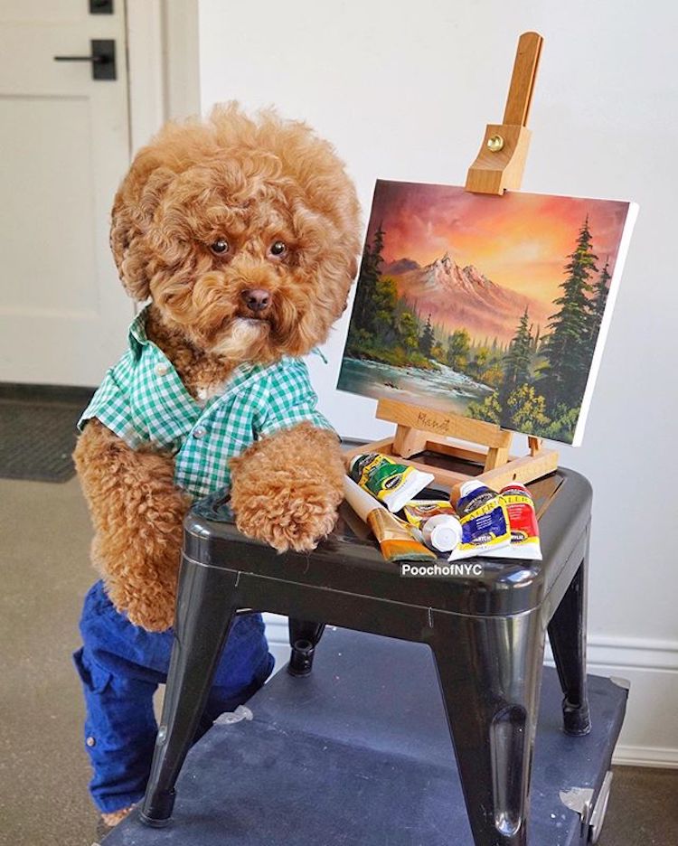 Ова слатко кученце е познато како Боб Рос на кучињата, бидејќи има сличност со познатиот американски уметник. За да ги направи сличностите поизразени, Агадор позира до уметнички слики.