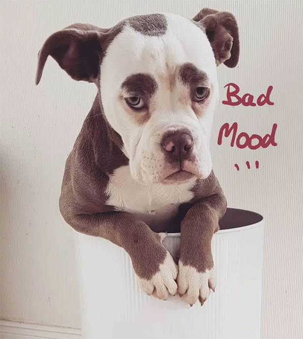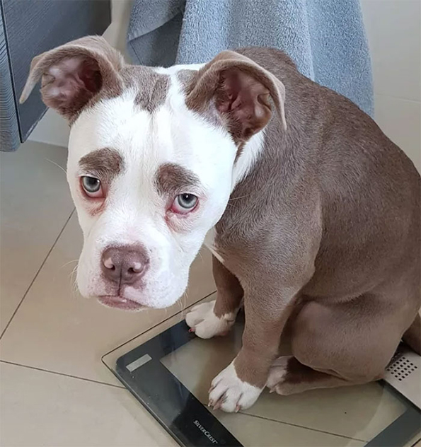 Ако некогаш сте се обиделе да си замислите булдог со веѓи, тогаш нема да можете да престанете да ги гледате фотографиите од ова куче! Англискиот булдог од Германија, со урнебесното име Мадам Ајбраус (Госпоѓа Веѓи) има невообичаени сиви линии над очите што изгледаат како веѓи во уникатна позиција, правејќи го изразот на кучето постојано тажен.