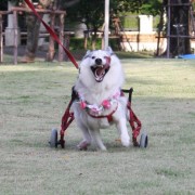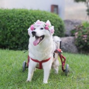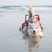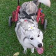 Запознајте ја Маја, хаска родена без шепи, која сега е најсреќното кученце во инвалидска количка