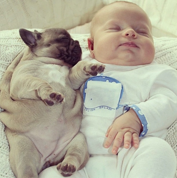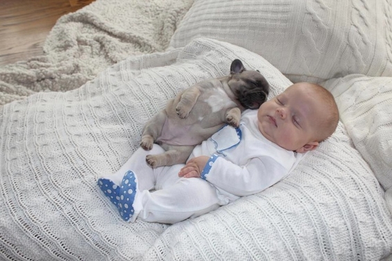 Заспаното бебе и преслатките мали булдози
