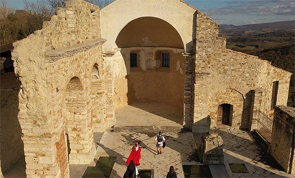 Урнатините од стариот град се распослани на рид, но занимлив е фактот дека тука се наоѓаат и други рушевини од античкиот град Компса, откриени дури по раскопувањето по земјотресот. Факт е дека на ова место живеат три генерации од различни епохи што го прави градот необична туристичка дестинација.Компса бил населен во 6 век п.н.е., но зачувани се остатоци од римското владеење како форумот и амфитеатрот. Сепак, интересен е фактот како античкиот град бил откриен благодарение на земјотресот.